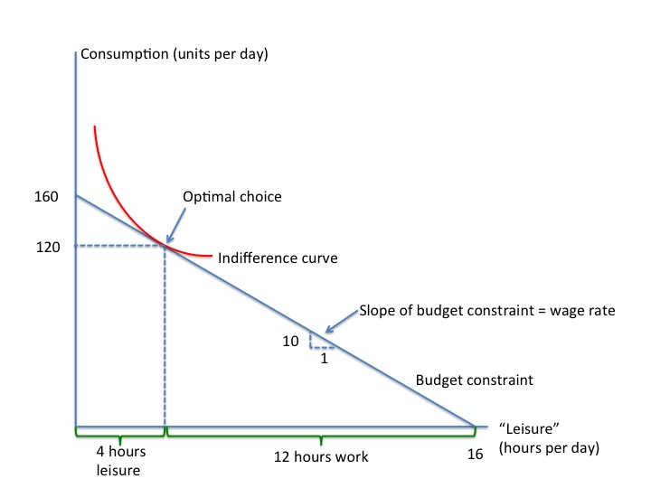 trade-off between leisure and consumption, as shown in the diagram below the