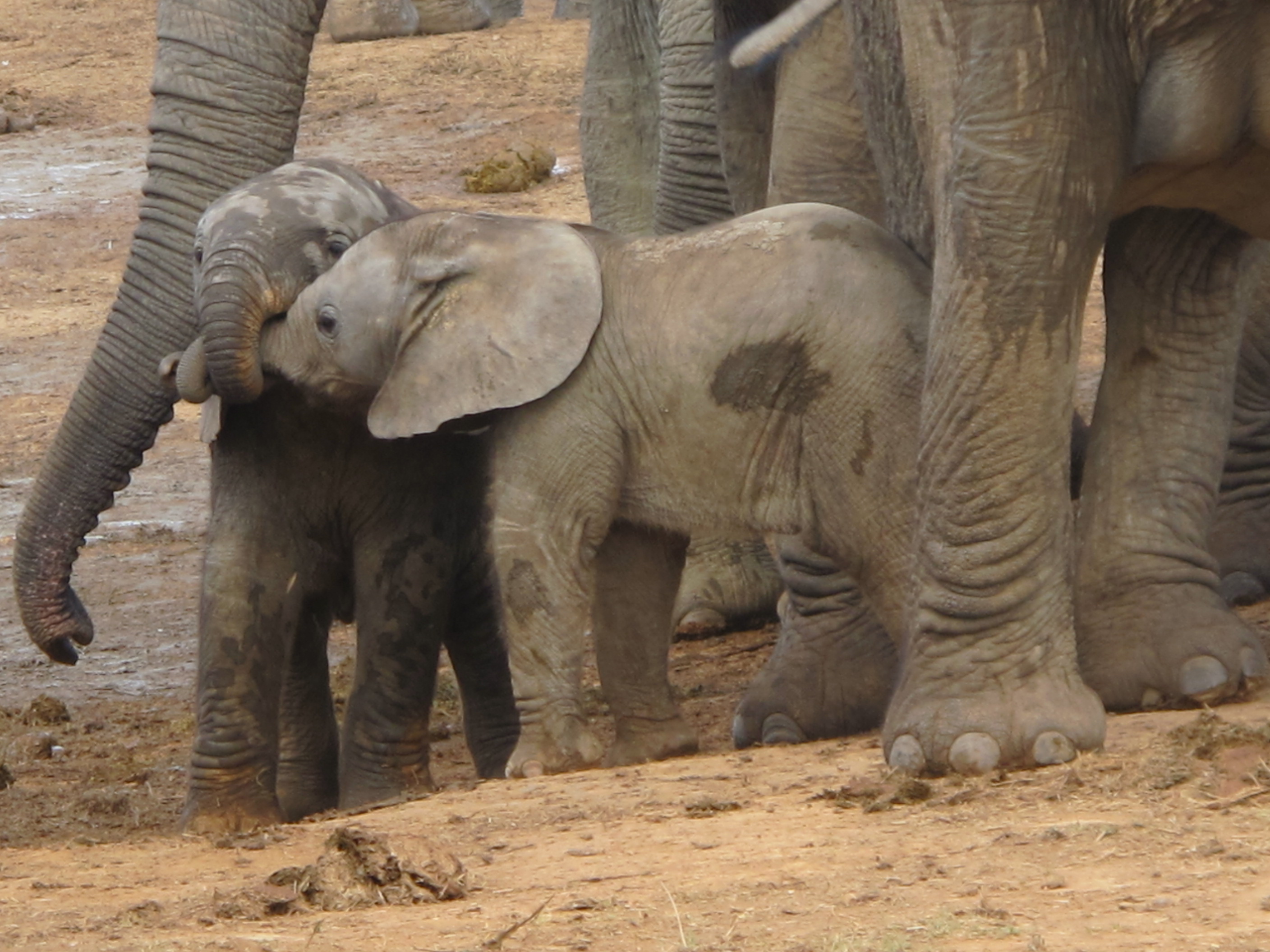 around in the waterhole, having a mud bath, caring for family, fighting over