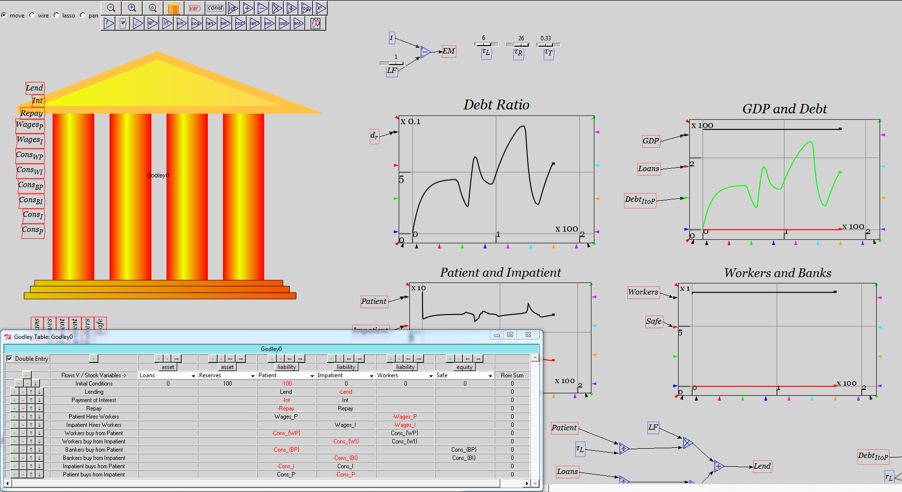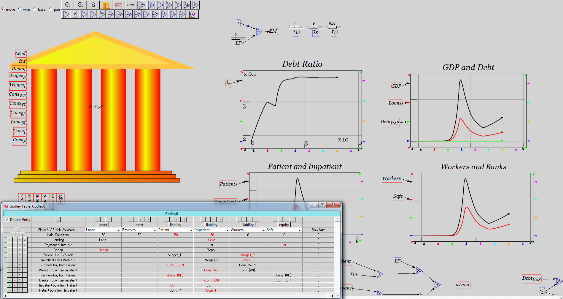 In the former no matter how you change the lending and repayment parameters (tau_L & tau_R respectively, GDP remains unmoved as does the money supply); only variations to the rate of turnover of production (tau_T) has any impact. Changes in the debt ratio have no relevance to macroeconomics.