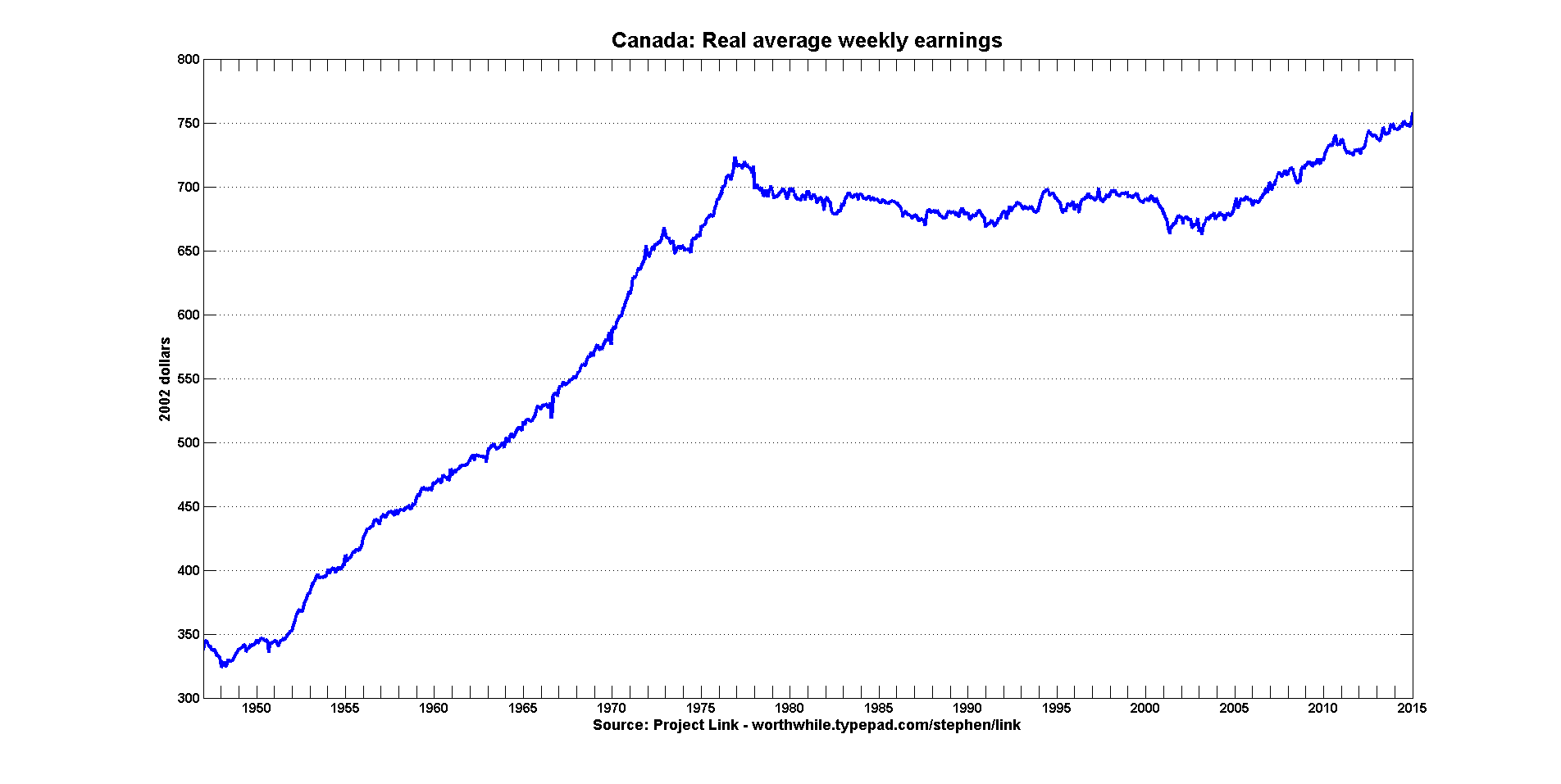 Something happened to real wage growth in the US as well an in Canada in the early 1970s. What, though?