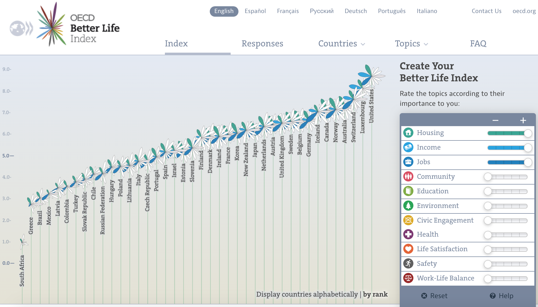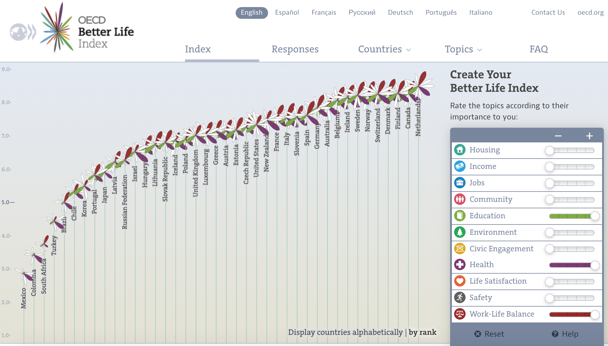 But what does a quality of life measure actually look like? To illustrate, here is a screenshot of the OECD Better Life Index